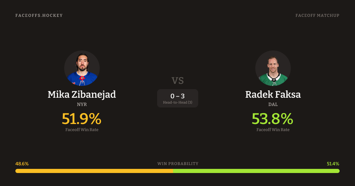 Mika Zibanejad vs Radek Faksa — Faceoff Head-to-Head