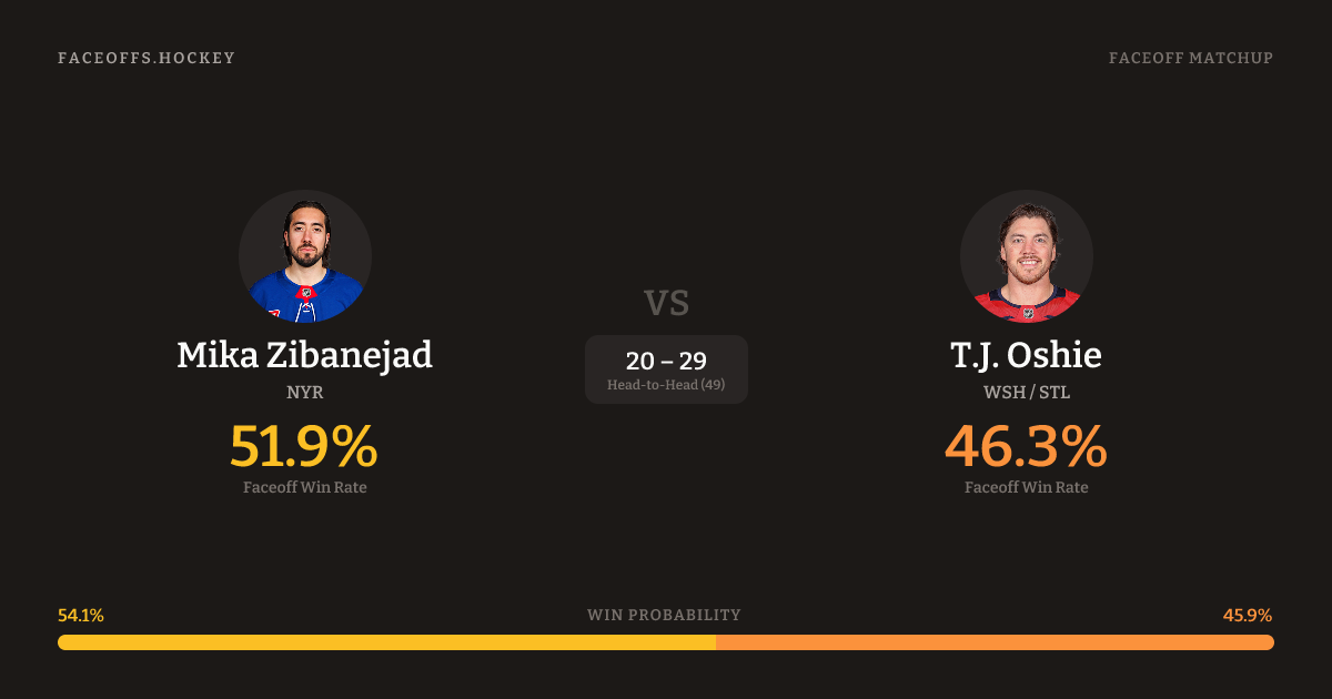 Mika Zibanejad vs T.J. Oshie — Faceoff Head-to-Head