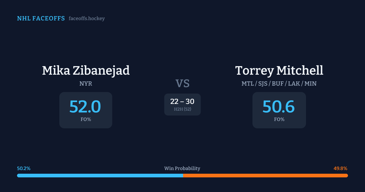 Mika Zibanejad vs Torrey Mitchell — Faceoff Head-to-Head
