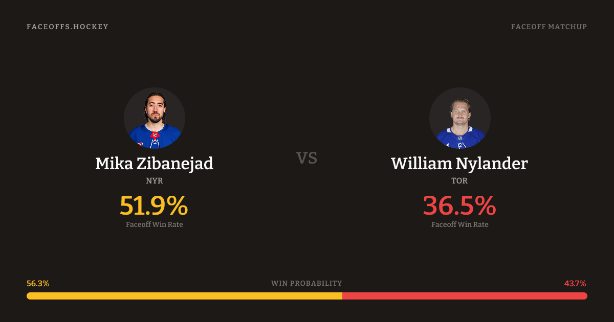 Mika Zibanejad vs William Nylander — Faceoff Head-to-Head