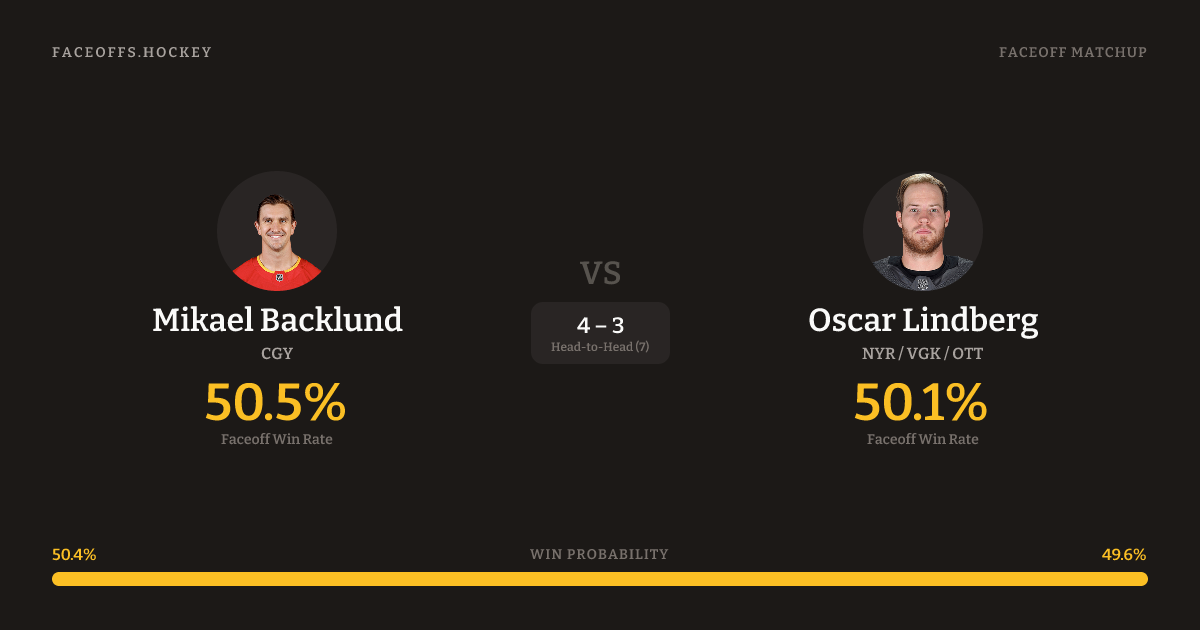 Mikael Backlund vs Oscar Lindberg — Faceoff Head-to-Head