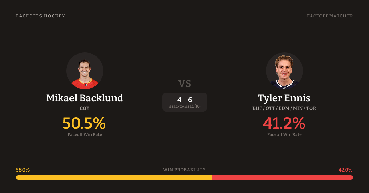 Mikael Backlund vs Tyler Ennis — Faceoff Head-to-Head