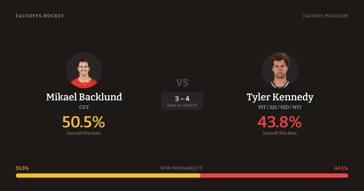 Mikael Backlund vs Tyler Kennedy — Faceoff Head-to-Head