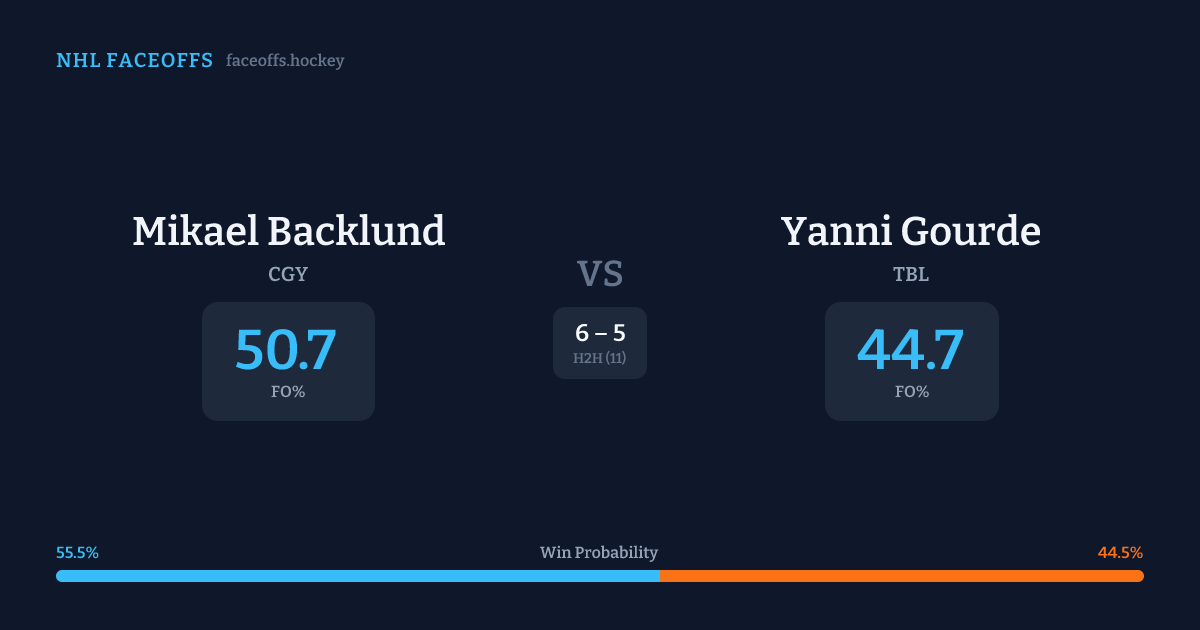 Mikael Backlund vs Yanni Gourde — Faceoff Head-to-Head