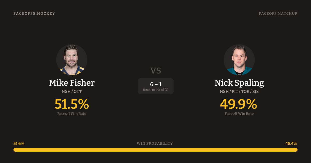 Mike Fisher vs Nick Spaling — Faceoff Head-to-Head