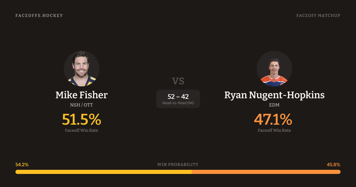 Mike Fisher vs Ryan Nugent-Hopkins — Faceoff Head-to-Head