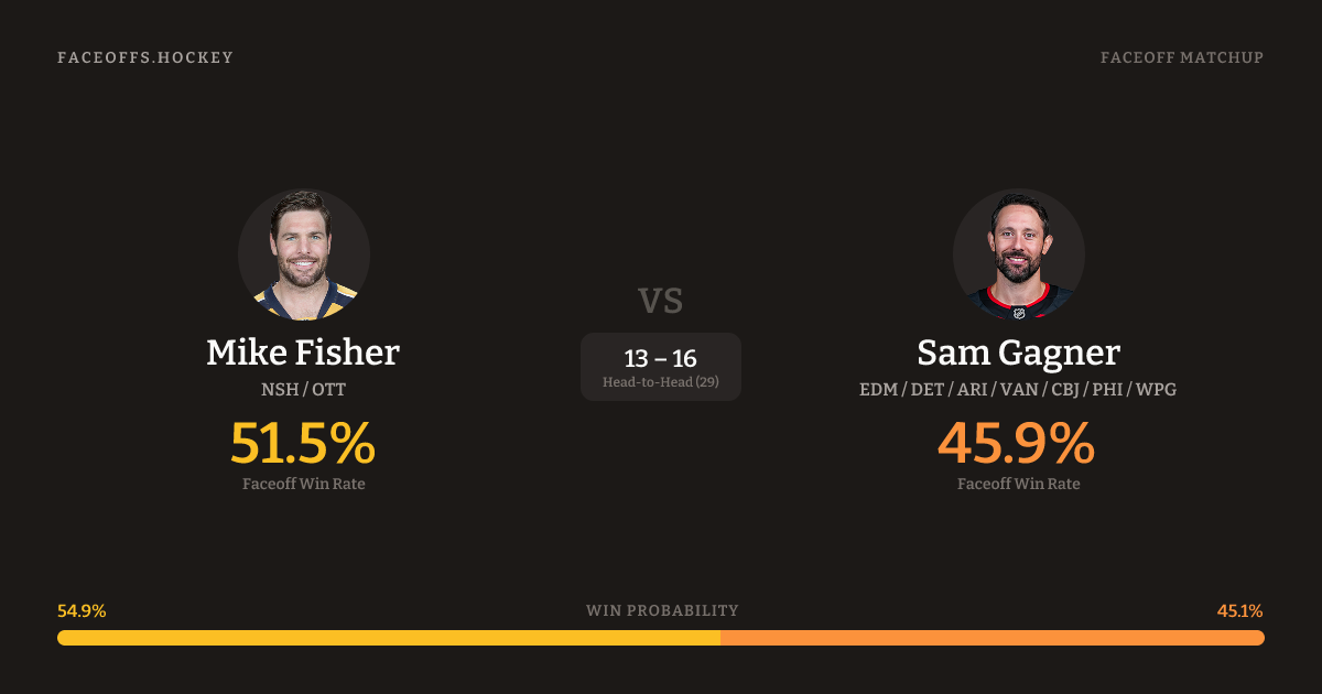 Mike Fisher vs Sam Gagner — Faceoff Head-to-Head