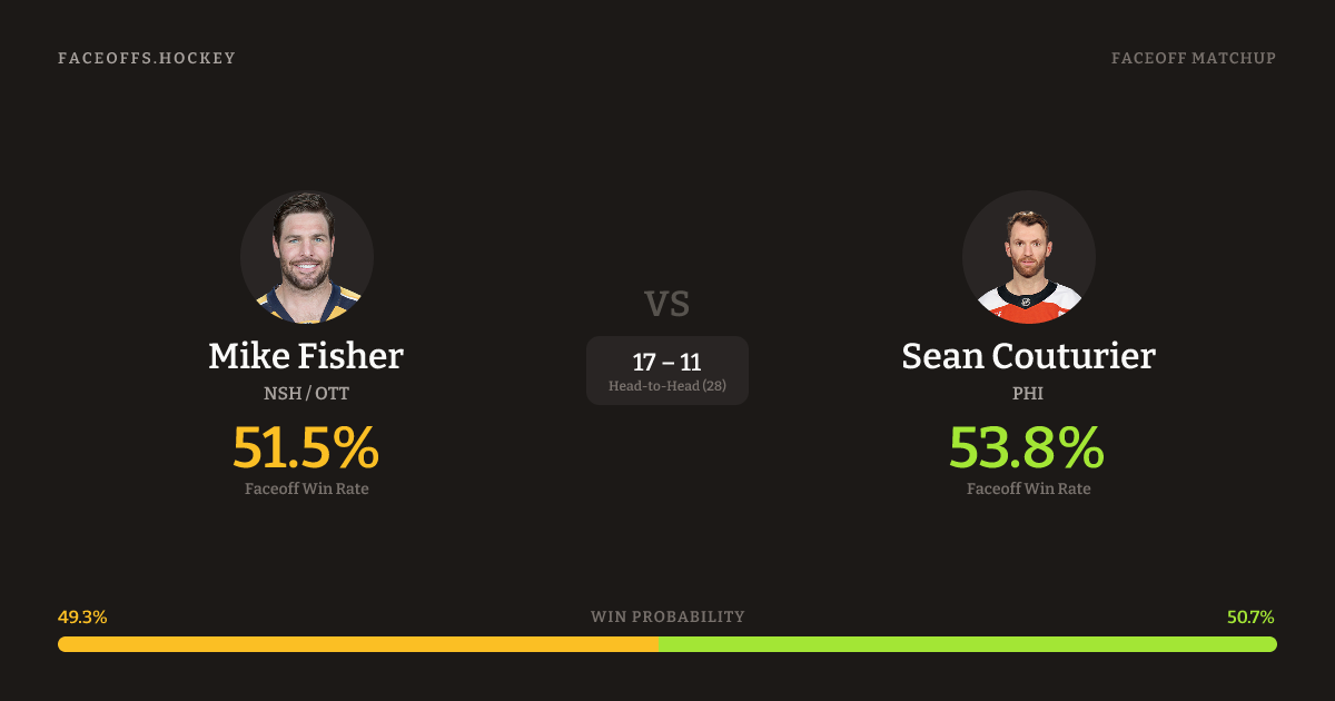 Mike Fisher vs Sean Couturier — Faceoff Head-to-Head