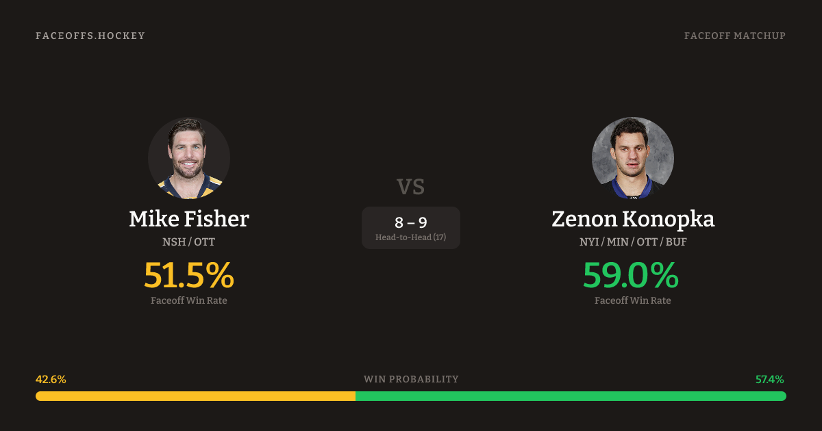 Mike Fisher vs Zenon Konopka — Faceoff Head-to-Head