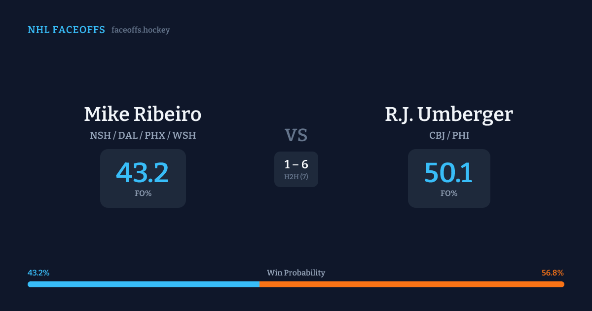 Mike Ribeiro vs R.J. Umberger — Faceoff Head-to-Head