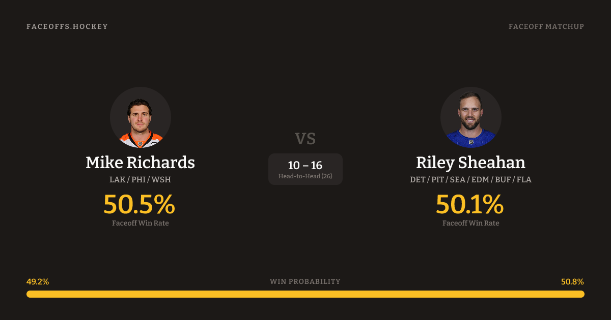 Mike Richards vs Riley Sheahan — Faceoff Head-to-Head