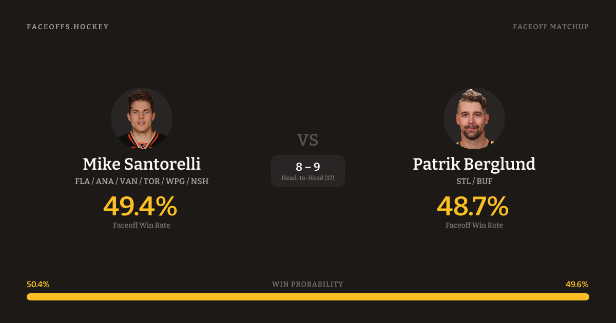 Mike Santorelli vs Patrik Berglund — Faceoff Head-to-Head