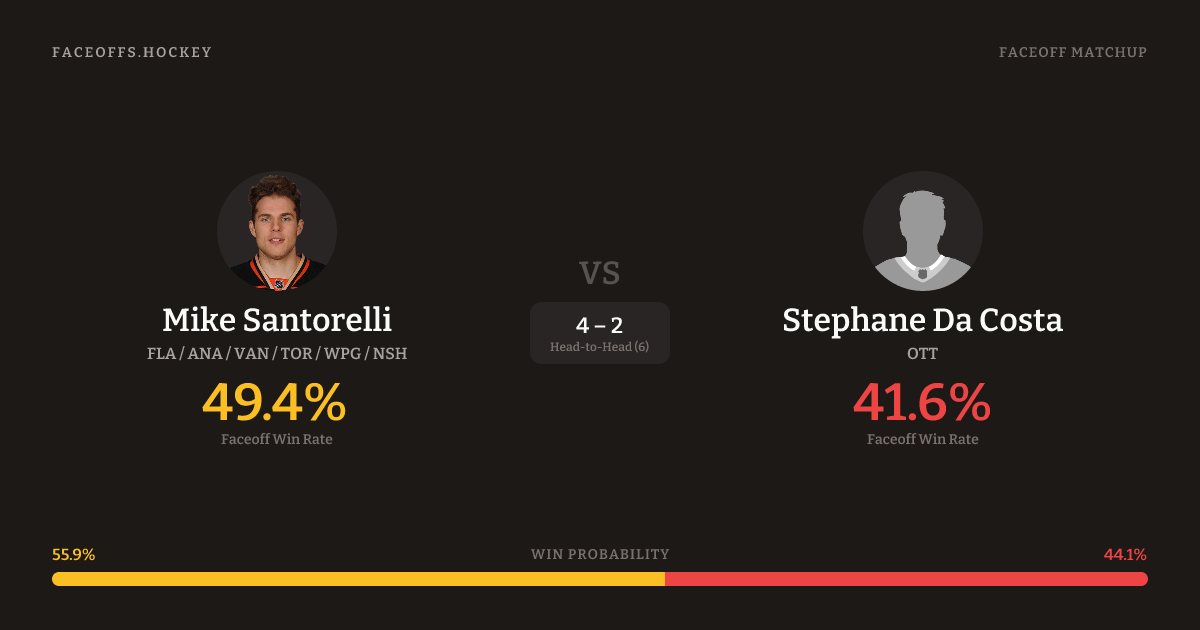 Mike Santorelli vs Stephane Da Costa — Faceoff Head-to-Head