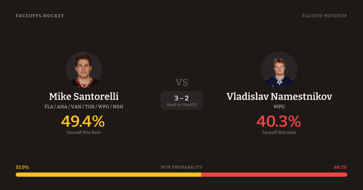 Mike Santorelli vs Vladislav Namestnikov — Faceoff Head-to-Head