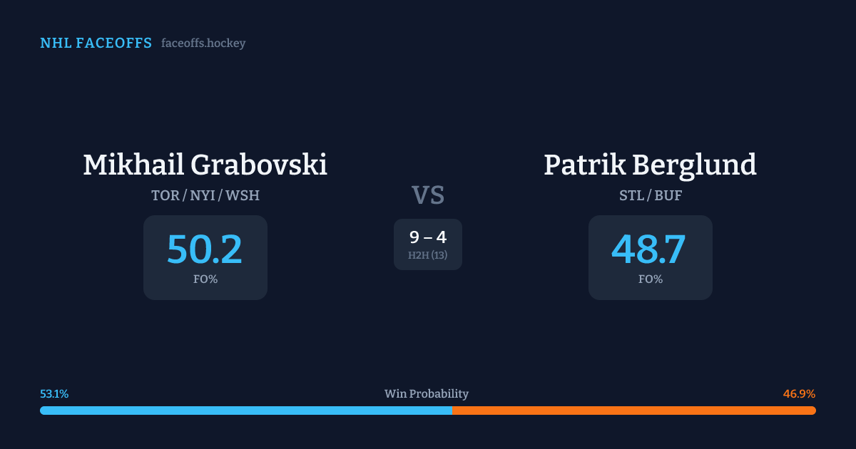Mikhail Grabovski vs Patrik Berglund — Faceoff Head-to-Head