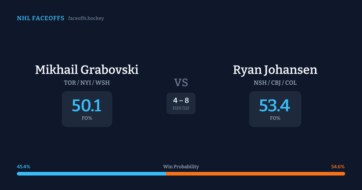 Mikhail Grabovski vs Ryan Johansen — Faceoff Head-to-Head