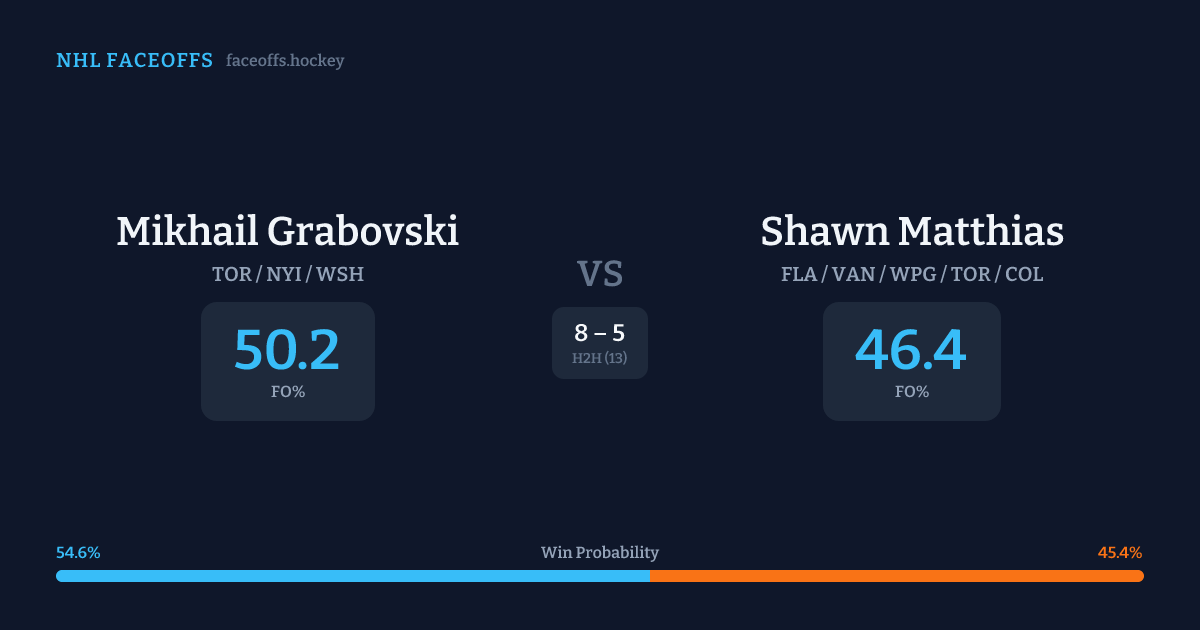 Mikhail Grabovski vs Shawn Matthias — Faceoff Head-to-Head