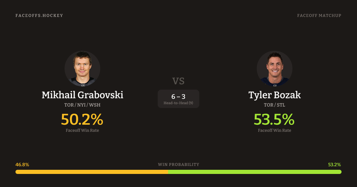 Mikhail Grabovski vs Tyler Bozak — Faceoff Head-to-Head