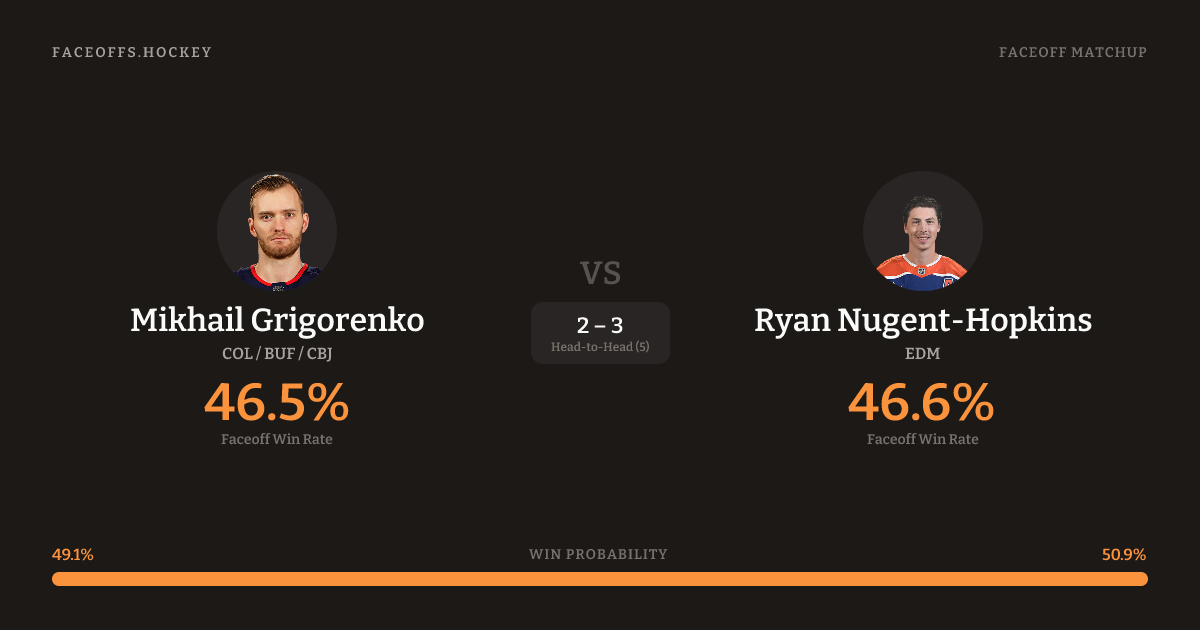Mikhail Grigorenko vs Ryan Nugent-Hopkins — Faceoff Head-to-Head