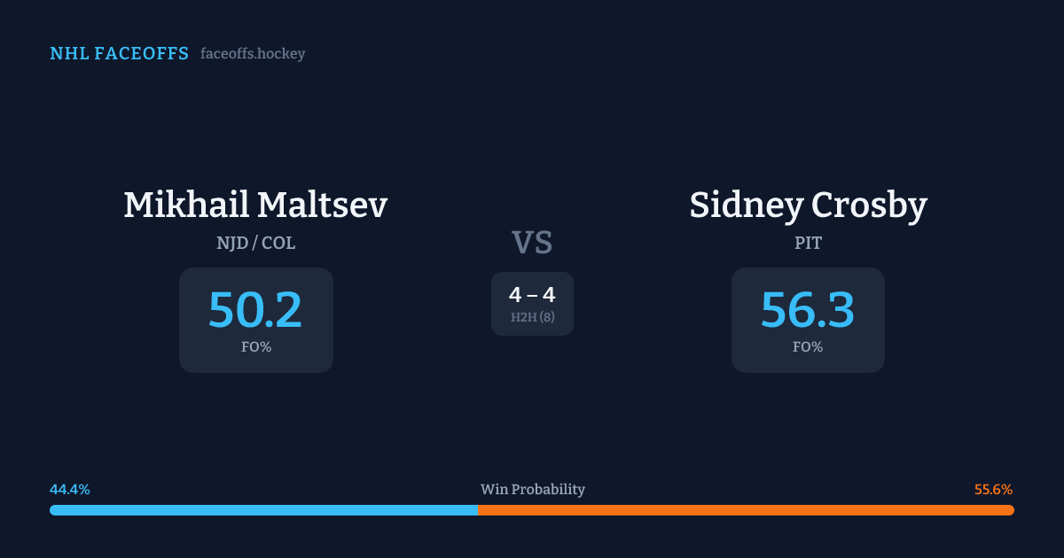 Mikhail Maltsev vs Sidney Crosby — Faceoff Head-to-Head