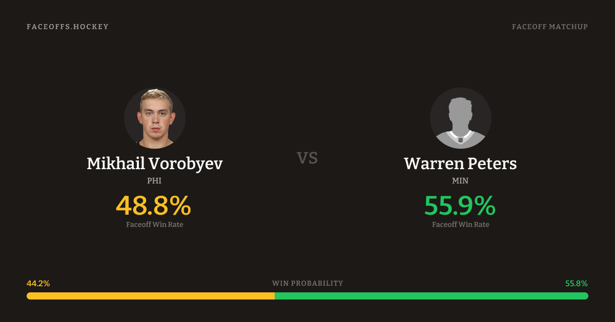 Warren Peters holds a +7.1% FO% edge overall. Vorobyev wins 44.3% vs left-shot opponents — Peters shoots left.
