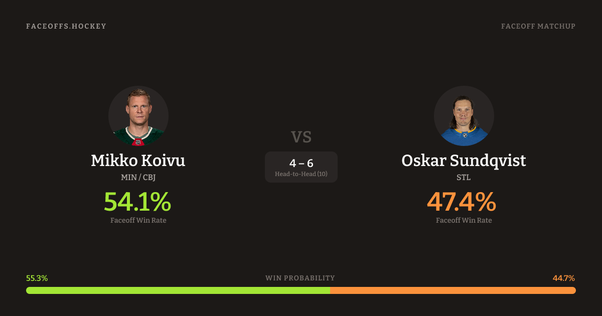 Mikko Koivu vs Oskar Sundqvist — Faceoff Head-to-Head