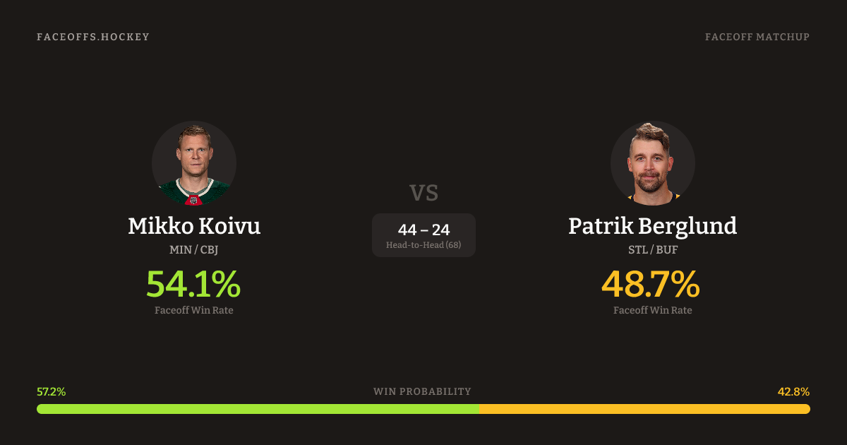 Mikko Koivu vs Patrik Berglund — Faceoff Head-to-Head