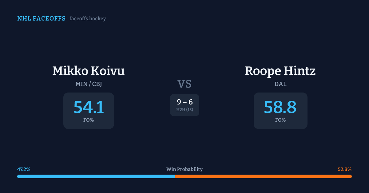 Mikko Koivu vs Roope Hintz — Faceoff Head-to-Head