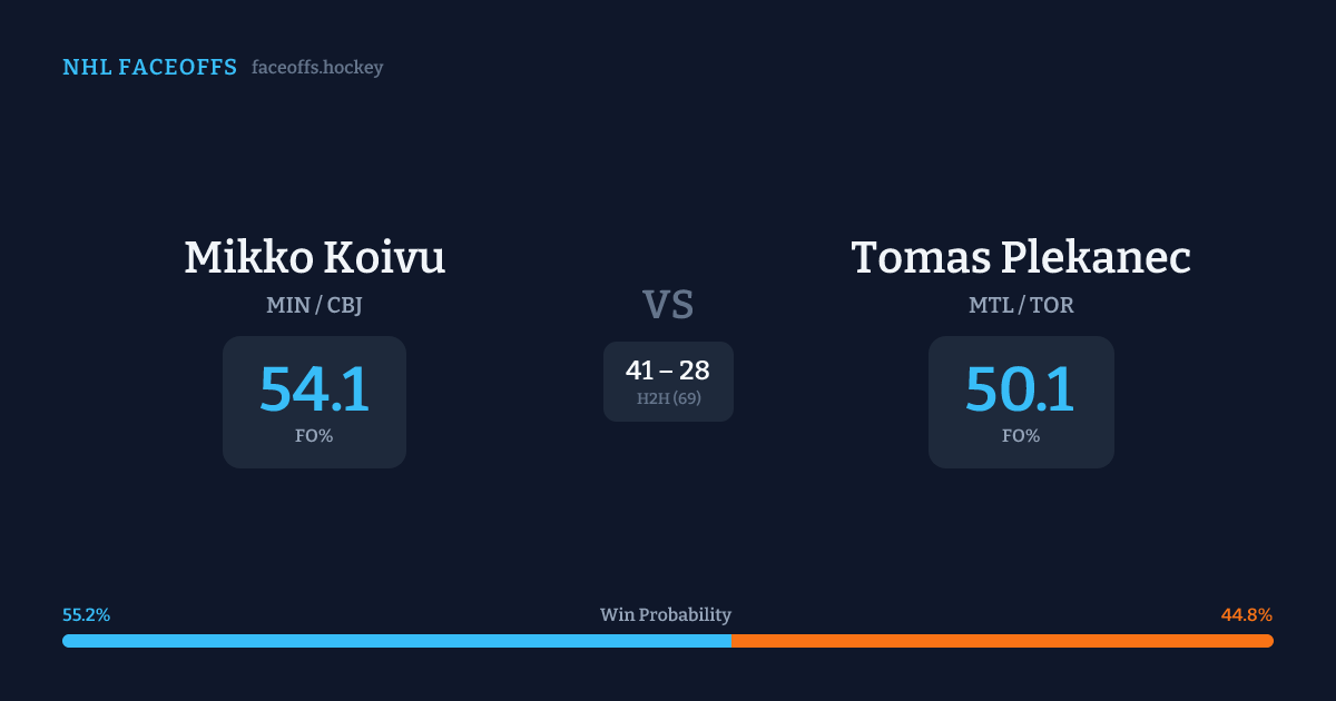 Mikko Koivu vs Tomas Plekanec — Faceoff Head-to-Head