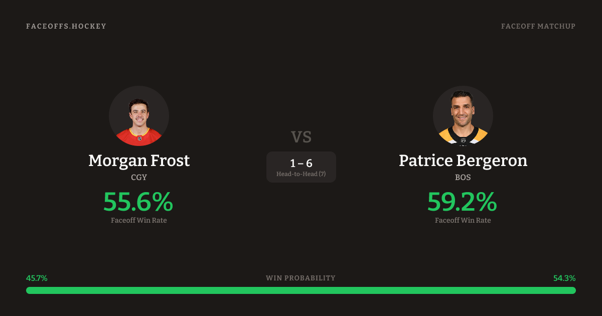 Morgan Frost vs Patrice Bergeron — Faceoff Head-to-Head