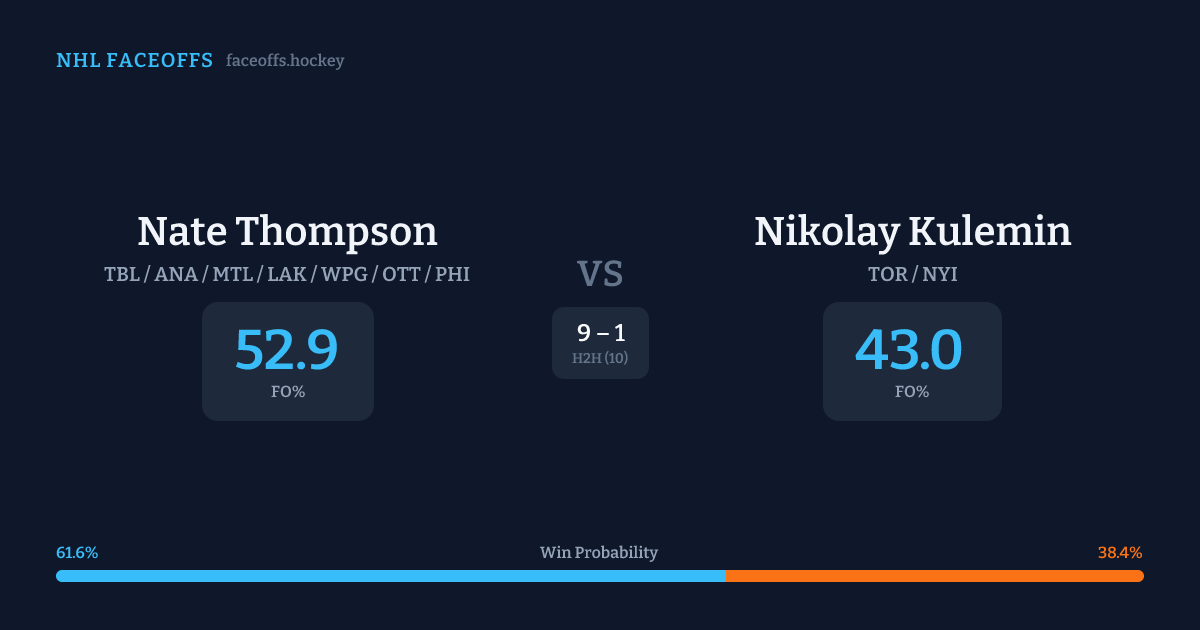 Nate Thompson vs Nikolay Kulemin — Faceoff Head-to-Head