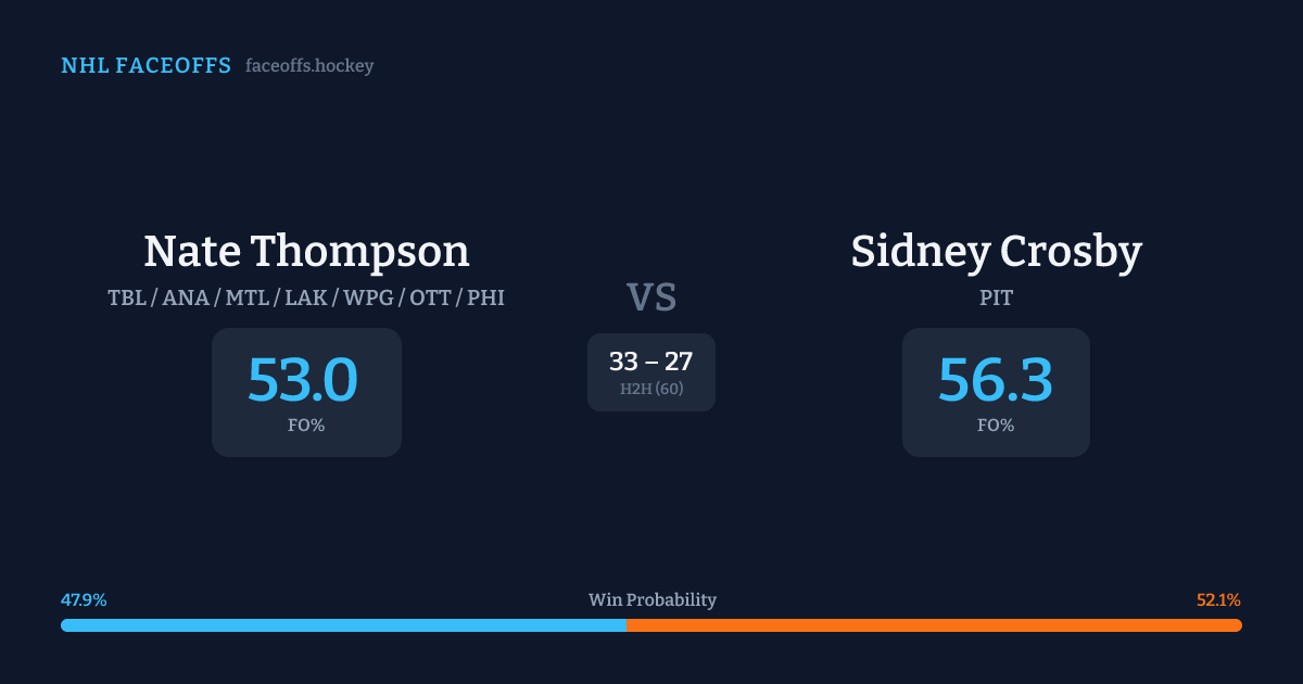 Nate Thompson vs Sidney Crosby — Faceoff Head-to-Head