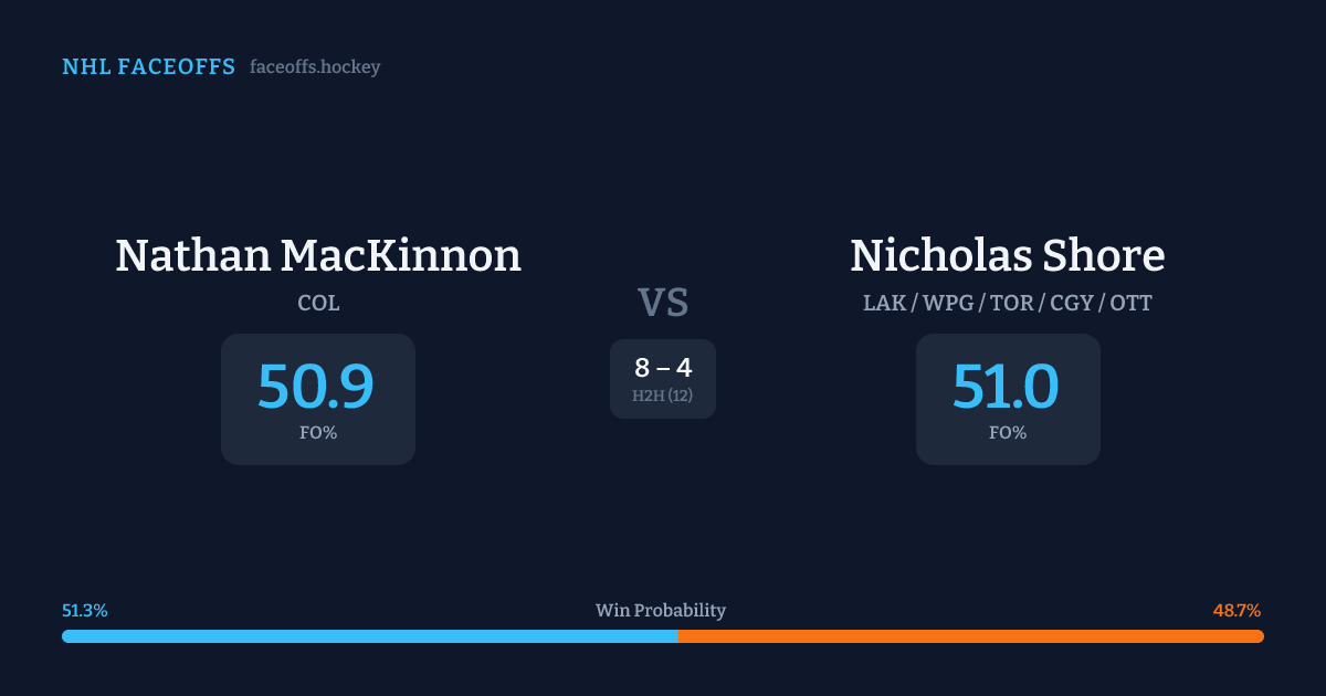 Nathan MacKinnon vs Nicholas Shore — Faceoff Head-to-Head