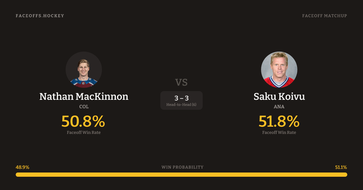 Nathan MacKinnon vs Saku Koivu — Faceoff Head-to-Head