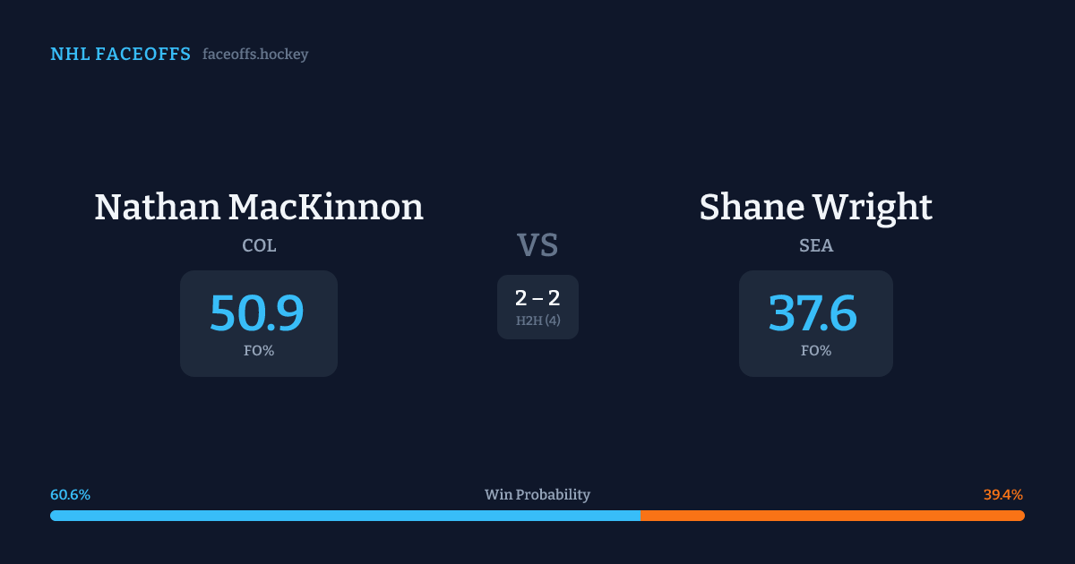 Nathan MacKinnon vs Shane Wright — Faceoff Head-to-Head