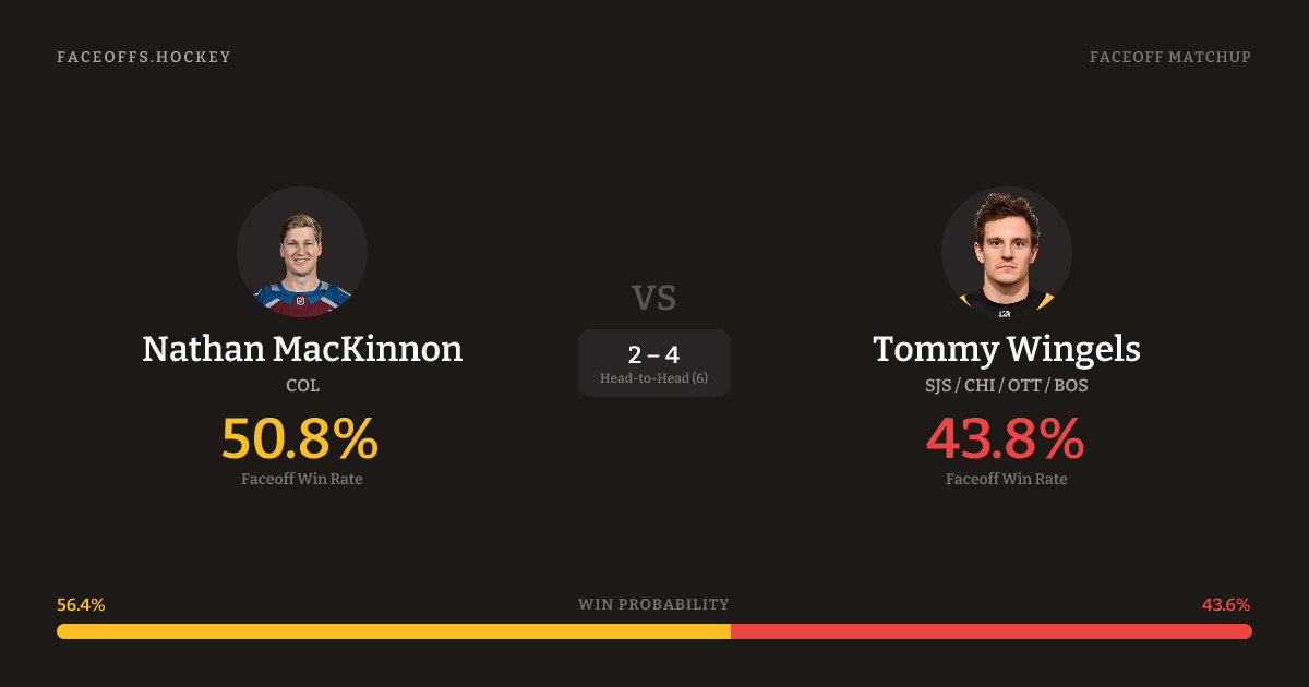 Nathan MacKinnon vs Tommy Wingels — Faceoff Head-to-Head