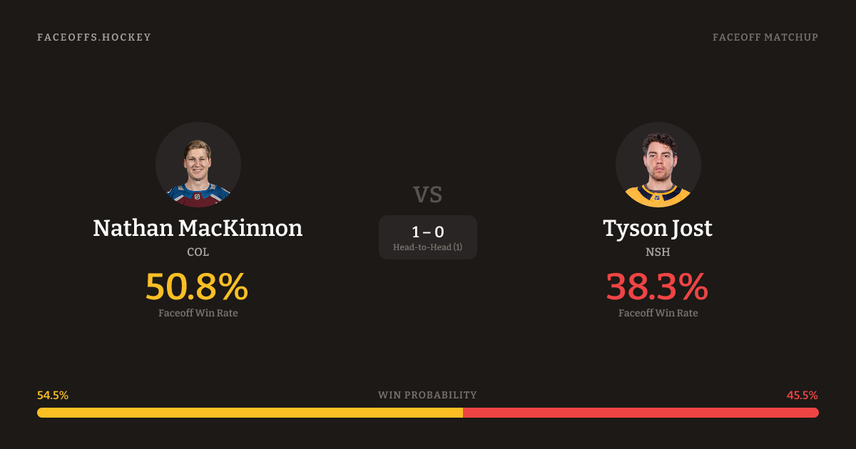 Nathan MacKinnon vs Tyson Jost — Faceoff Head-to-Head