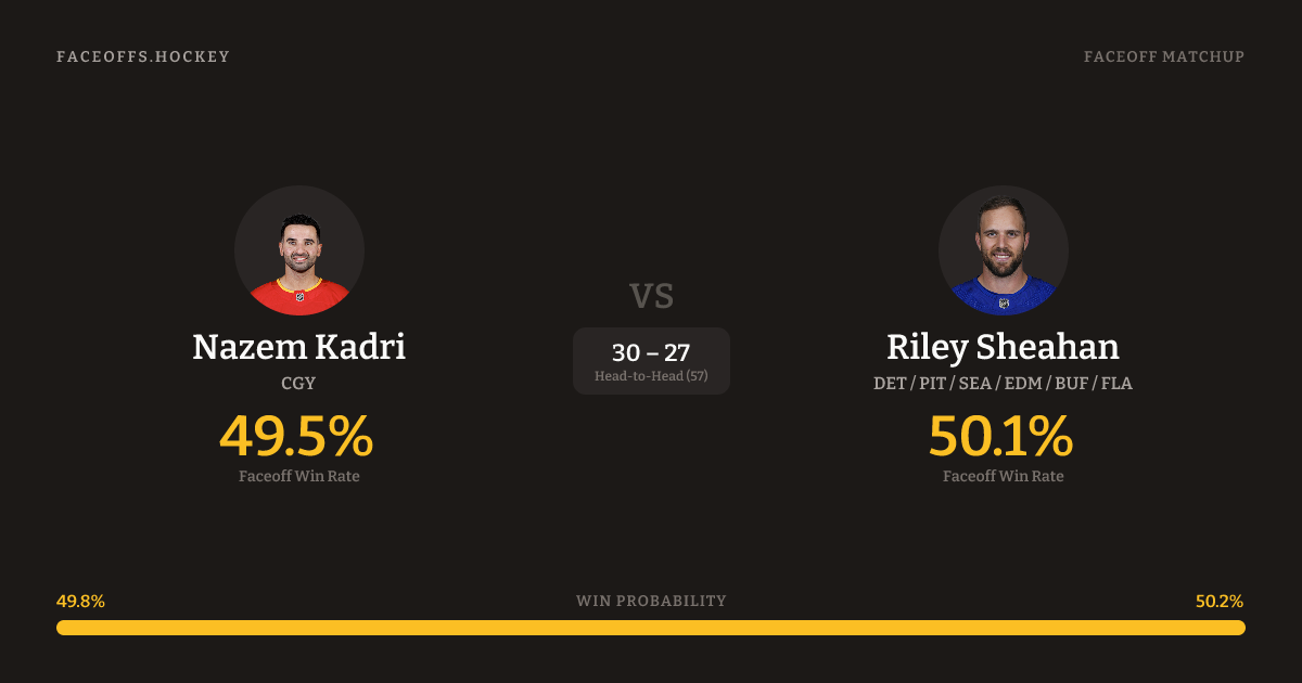 Nazem Kadri vs Riley Sheahan — Faceoff Head-to-Head