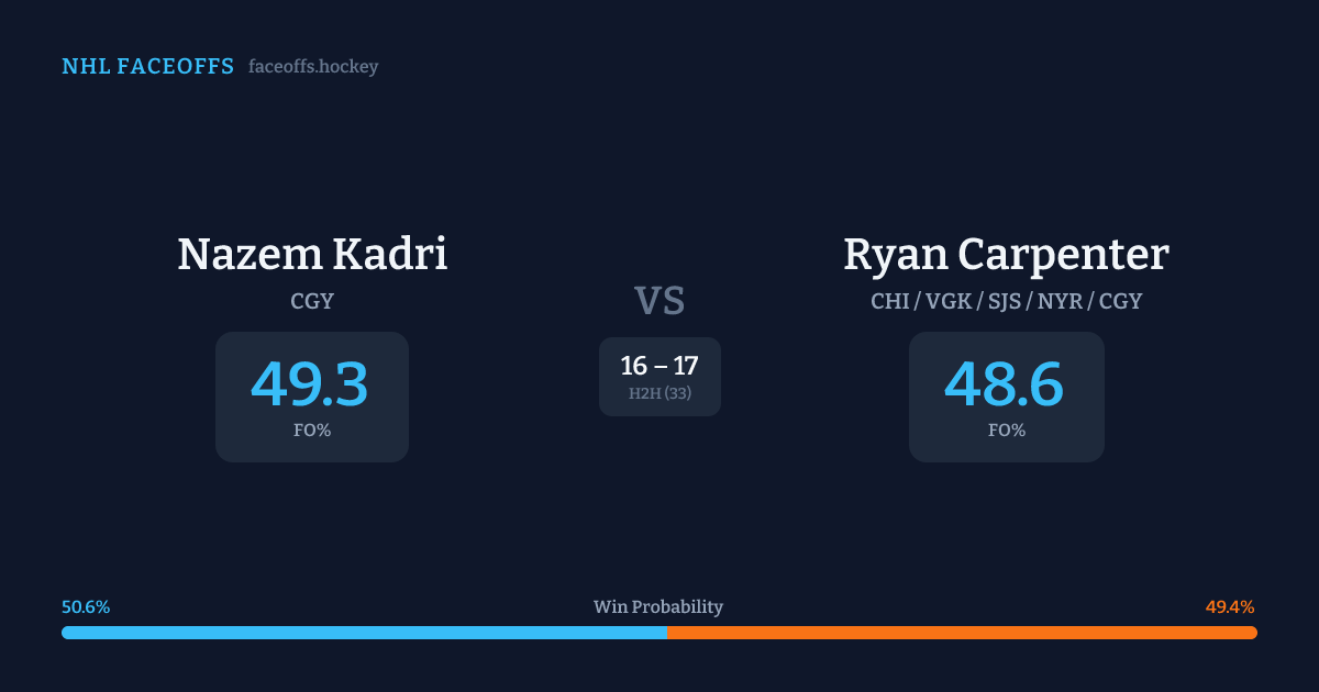 Nazem Kadri vs Ryan Carpenter — Faceoff Head-to-Head