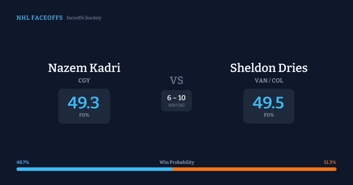 Nazem Kadri vs Sheldon Dries — Faceoff Head-to-Head