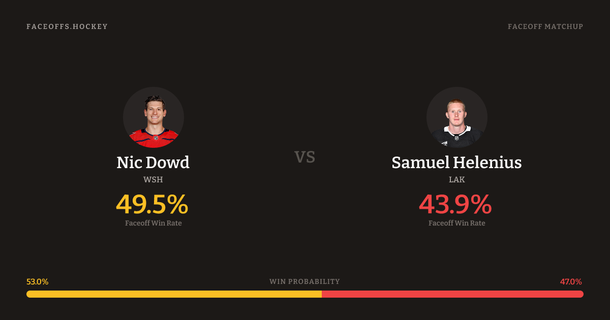 Nic Dowd vs Samuel Helenius — Faceoff Head-to-Head