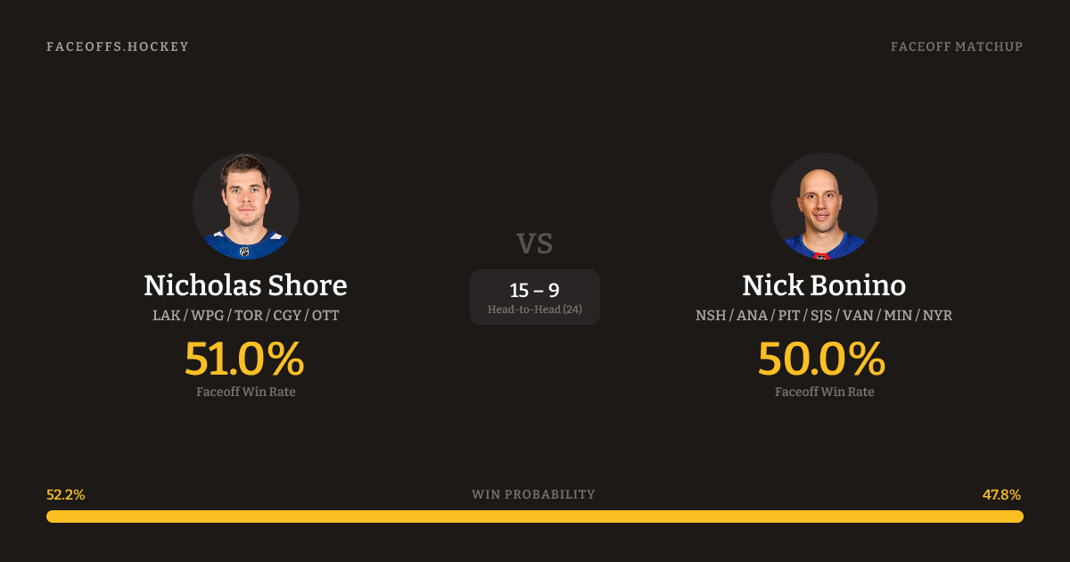 Nicholas Shore vs Nick Bonino — Faceoff Head-to-Head