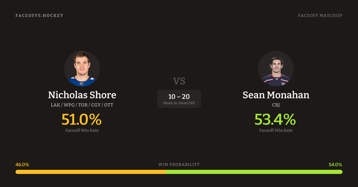 Nicholas Shore vs Sean Monahan — Faceoff Head-to-Head