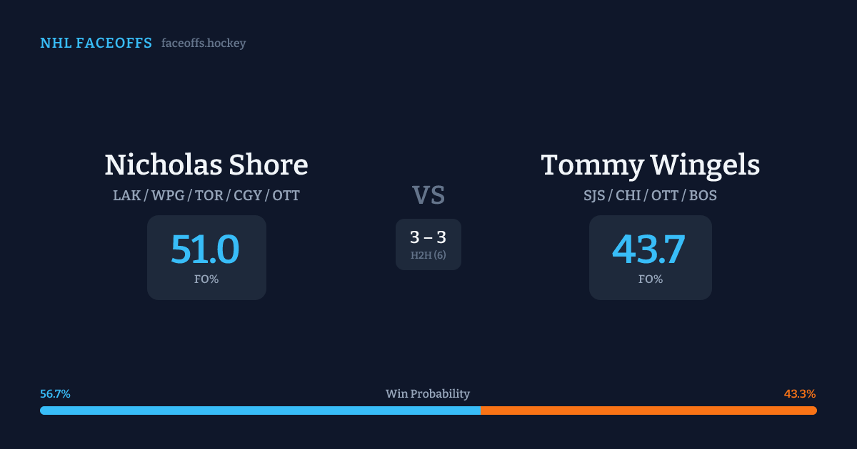 Nicholas Shore vs Tommy Wingels — Faceoff Head-to-Head