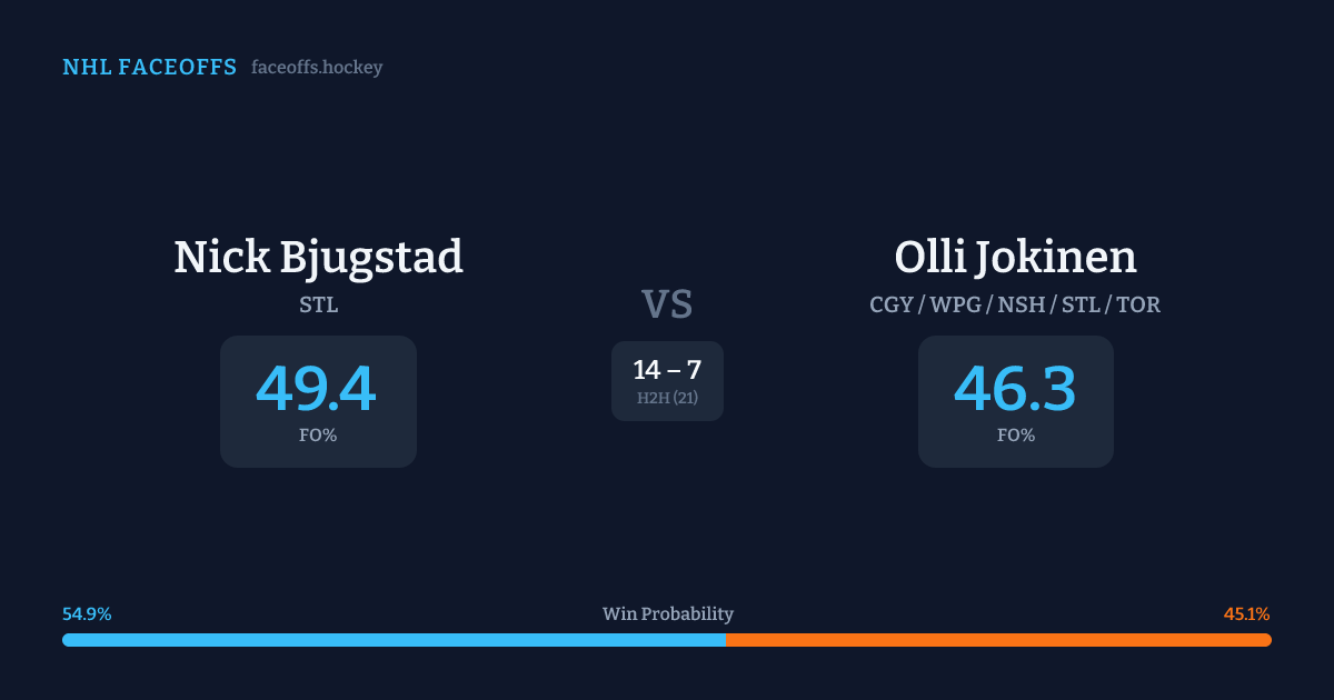 Nick Bjugstad vs Olli Jokinen — Faceoff Head-to-Head