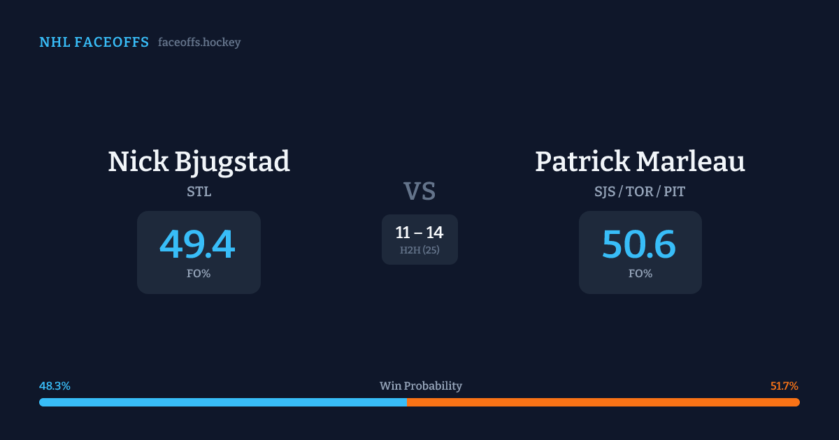 Nick Bjugstad vs Patrick Marleau — Faceoff Head-to-Head