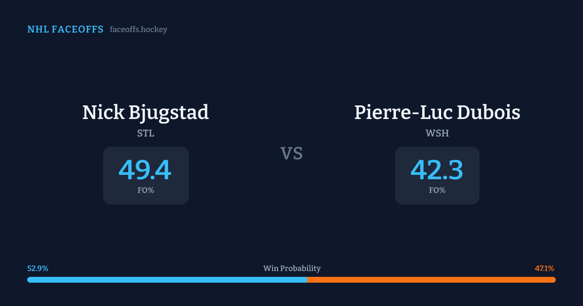 Nick Bjugstad vs Pierre-Luc Dubois — Faceoff Head-to-Head