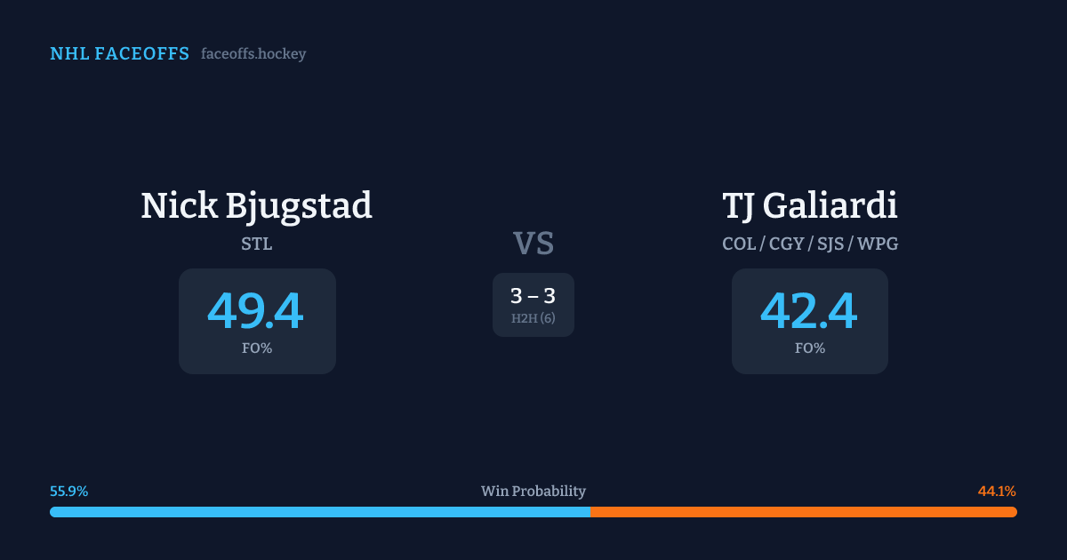 Nick Bjugstad vs TJ Galiardi — Faceoff Head-to-Head