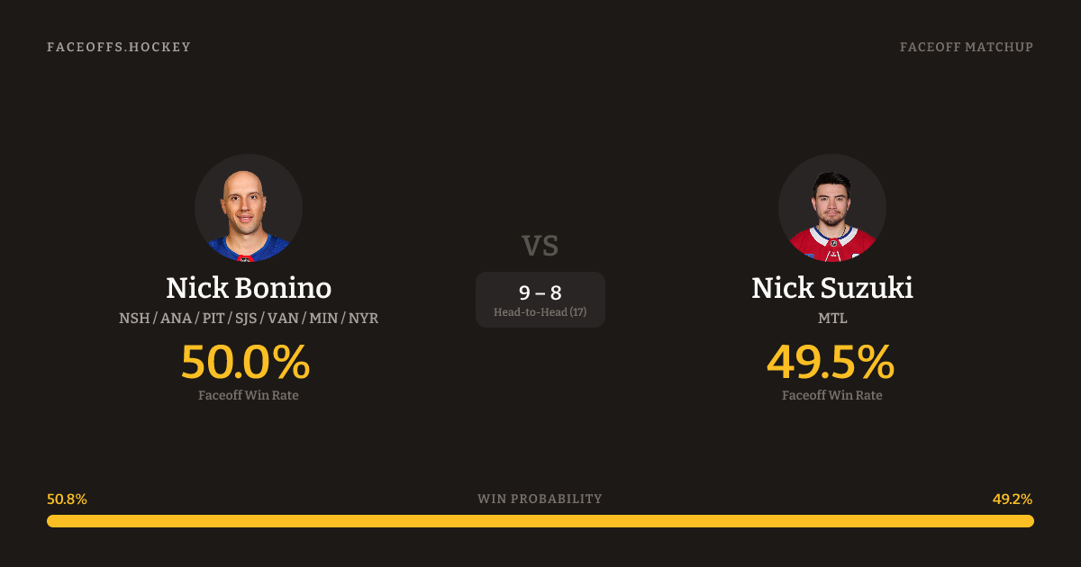 Nick Bonino vs Nick Suzuki — Faceoff Head-to-Head