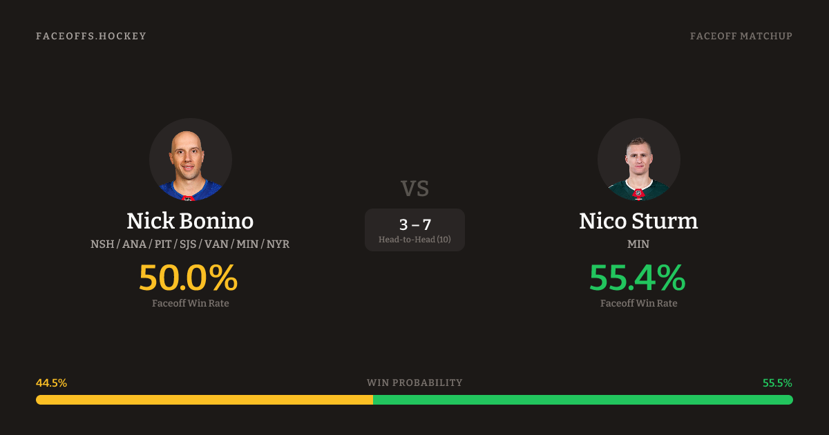 Nick Bonino vs Nico Sturm — Faceoff Head-to-Head